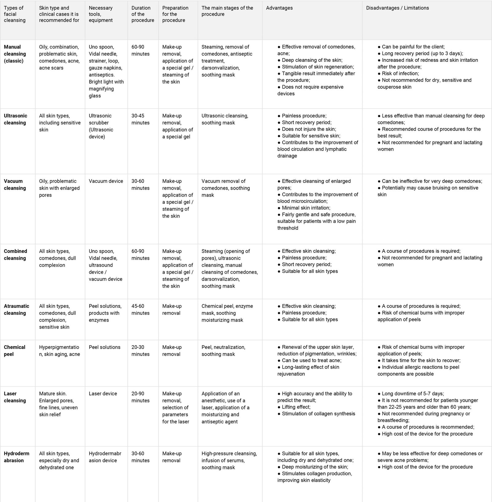 The frequency of the facial cleansing procedure depends on the activity of the sebaceous glands. An indication for manual pore cleansing at any age is their clogging. It should be taken into account that frequent facial cleansing (more often than once a month), especially manual cleansing, can cause a protective rebound reaction of the skin and lead to undesirable consequences: